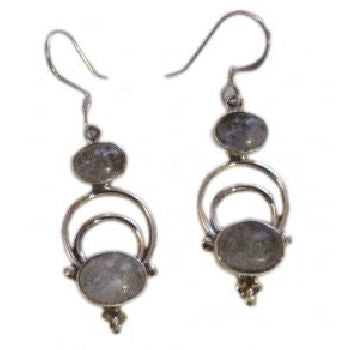 Stunning Double Moon Stone Earring is hand crafted in Nepal in Sterling silver by Shakya clan.