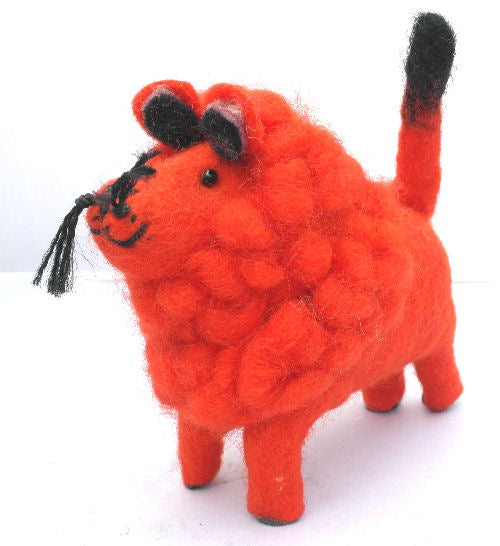 Fun Felt orange lion is hand crafted from sheep wool
