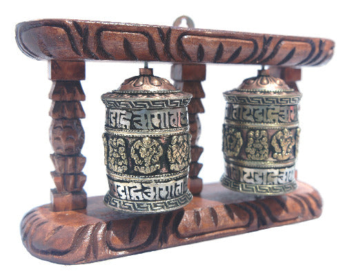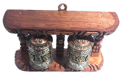 Tibetan prayer wheels (called Mani wheels by the Tibetans) are devices for spreading spiritual blessings and well being. Rolls of thin paper, imprinted with many copies of the mantra (prayer) Om Mani Padme Hum, printed in an ancient Tibetan script, are wound around an axle in a protective container and spun around and around.