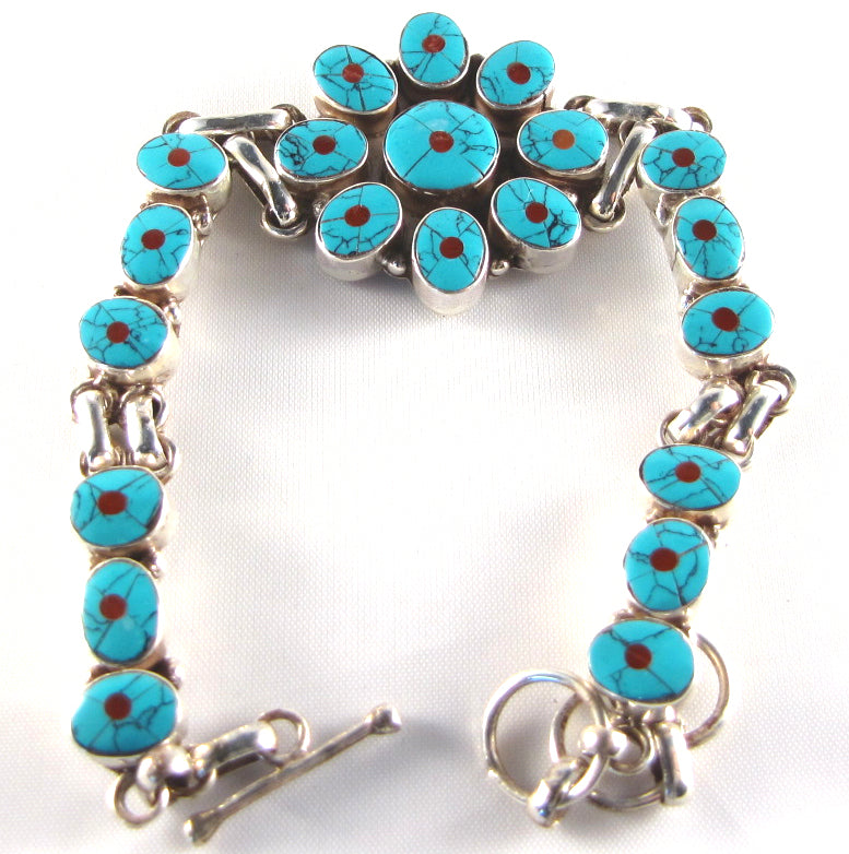 Hand made Sterling silver Turquoise Braclet with touch of coral