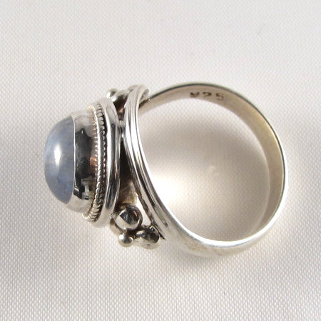 Rainbow Moon stone ring is sterling silver hand made in Nepal.
